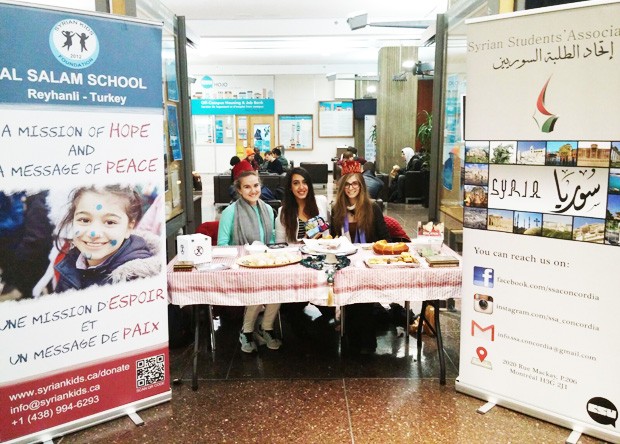 The Concordia Syrian Students Association (SSA) holds bake sales every Friday on the 7th floor of the Henry F. Hall Building, from noon to 3 p.m., and on the 2nd floor from noon to 6 p.m. The SSA encourages interested students to reach out to the association through email or Facebook, or to donate to the Syrian Kids Foundation.