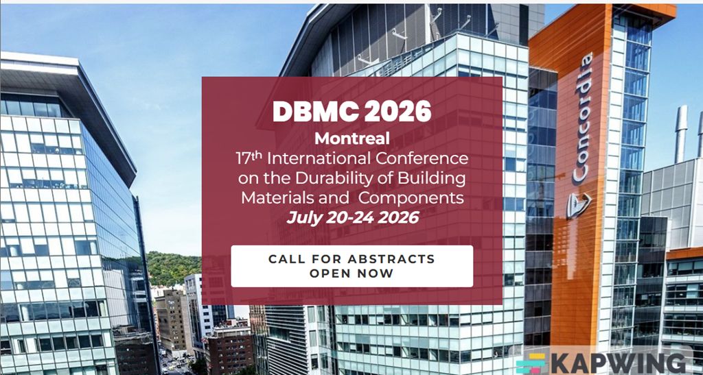 Concordia University, together with the National Research Council Canada, is honored to host the 17ᵗʰ International Conference on Durability of Building Materials and Components in Montreal, Canada, July 20-24, 2026. The conference will spotlight the evolving challenges and opportunities in the field, with a particular focus on the impacts of climate change and emerging construction technologies on the durability and performance.