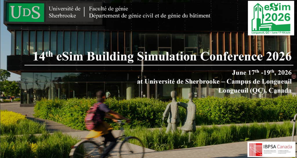 Université de Sherbrooke will hold eSim 2026 at the Longueuil Campus of the Université de Sherbrooke, just minutes from downtown Montreal, from June 17–19, 2026. This conference will highlight the essential role of Building Performance Simulationin in tackling climate change, enhancing occupant health and comfort, and accelerating the transition toward low-carbon buildings and resilient communities.