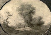 Extensive landscape with travelers on a track near a walled town with a castle and a church, a village beyond.