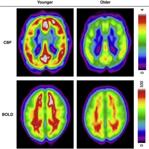 Cerebral bloodflow (CBF) and blood oxygen level-dependent (BOLD) measurements.