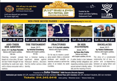The Azrieli Institute of Israel Studies has purchased 10 tickets to give away to our students . We are proud to offer 2 tickets to the upcoming week's film that will be viewed by the Jewish Public Library to a current Concordia University student. Each week, for five straight weeks, the Institute will post a question about Israel. All you have to do is email the answer of the week to the Institute (azrieli.institute@concordia.ca). In that same email, please send us your full name, student ID# and your phone number. Submissions need to be received by Thursday noon to qualify for that week's draw. One submission per person per draw will qualify.