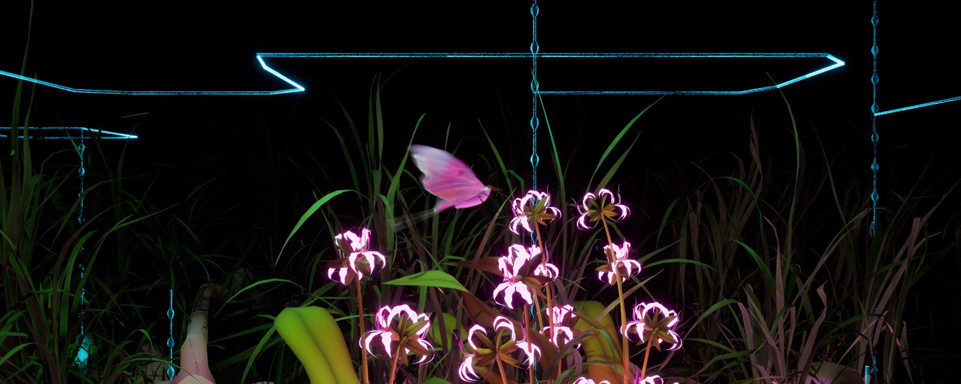 Tending as a practice of care guides their approach, shaping speculative gardens composed of video, light, sound, computational systems, and both real and virtual plants. Experienced through exhibition, scenography and audiovisual performance, these works provide audiences with contemplative environments to reflect on their relationship to nature and consider how acts of worldbuilding shape the affective and political realities of the climate crisis.