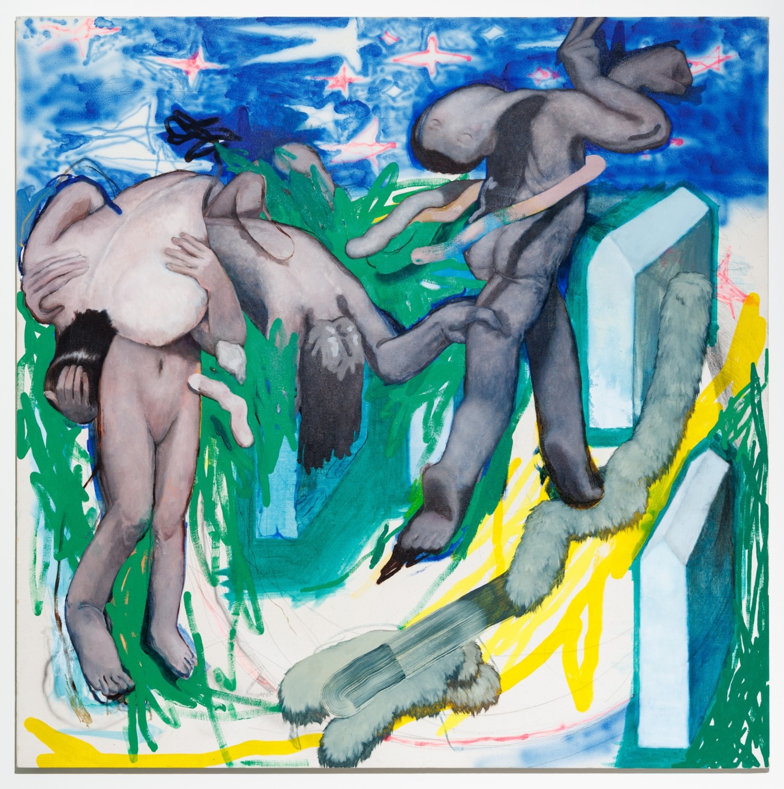 My painting practice combines oil, acrylic and airbrush to integrate digital aesthetics into the material, painted image. Rather than rejecting the potential existential threat posed by the digital, my practice is interested in absorbing its aesthetics and processes. I reference the collage-like nature of the digital landscape, juxtaposing elements rendered in a variety of visual languages. Within these paintings I faithfully reproduce photographic images, render repeating imagery, and paint lines that reference digital airbrush tools.