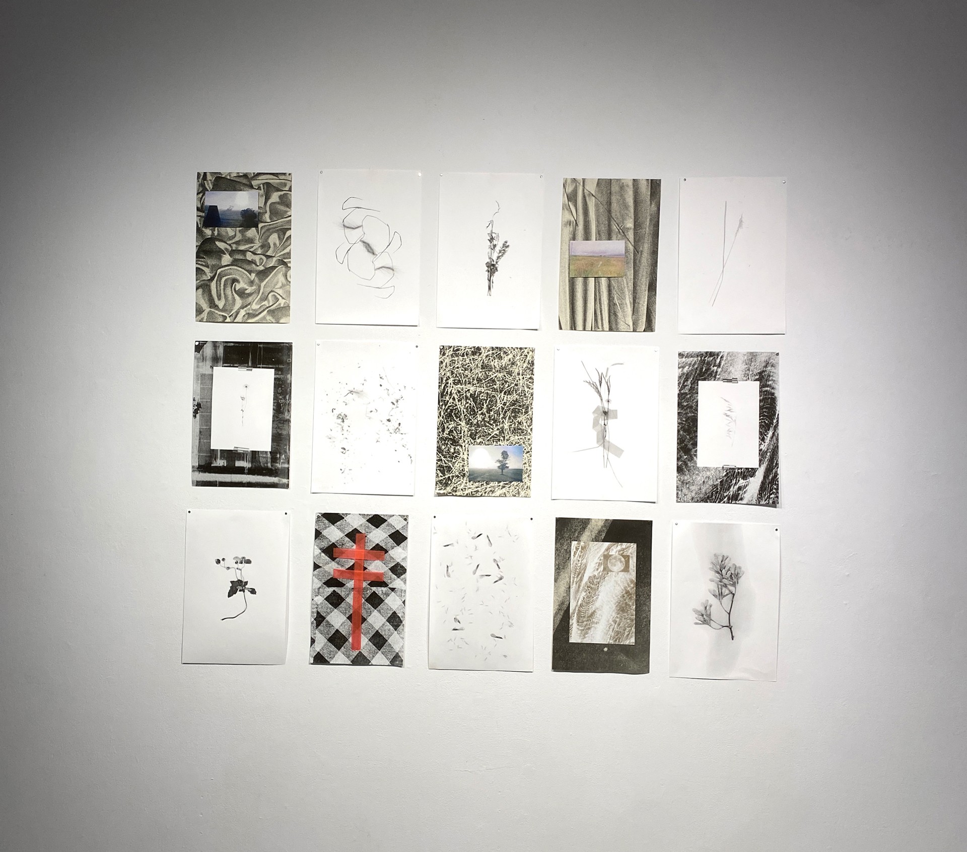 My interdisciplinary practice explores grief as an ongoing material and energetic process, where images, objects, and organic matter circulate like memory — transforming, decaying, and retaining presence over time. Drawing on my background in graphic design, printmaking, and publishing, I work across analog and digital technology to create works in print, installation, sculpture and artist books. Using collage as both a conceptual framework and a material strategy, I work with found images, lo-fi textures, glitches, and collected materials. The process of making becomes a mourning ritual itself, investigating how ephemeral traces and affective objects hold energy and embody memory.