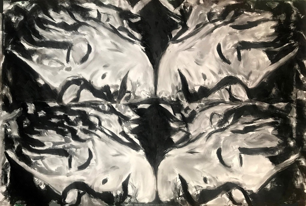 À l’heure actuelle, je réalise une série de portraits – au charbon sur mylar – de sans-abri de Montréal durant la pandémie. Ces portraits dépeignent de vraies personnes que je rencontre lors de mes marches en ville.