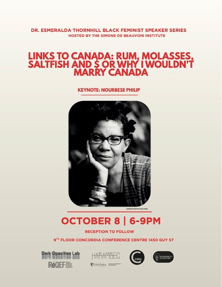The Simone de Beauvoir Institute and Harambec invite you to the 3rd Annual Dr. Esmeralda Thornhill Black Feminist Speaker’s Series, taking place on Wednesday, October 8, 2025, from 6 to 9 p.m. at Concordia University’s Conference Centre (1450 Guy Street, 9th floor). A catered reception will follow.