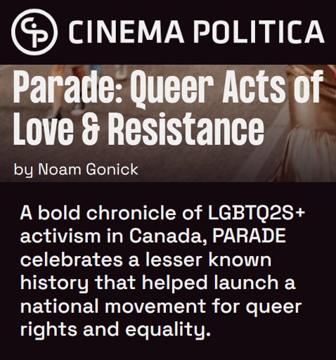 Cinema Politica Concordia presents "Parade: Queer Acts of Love & Resistance" by Noam Gonick.