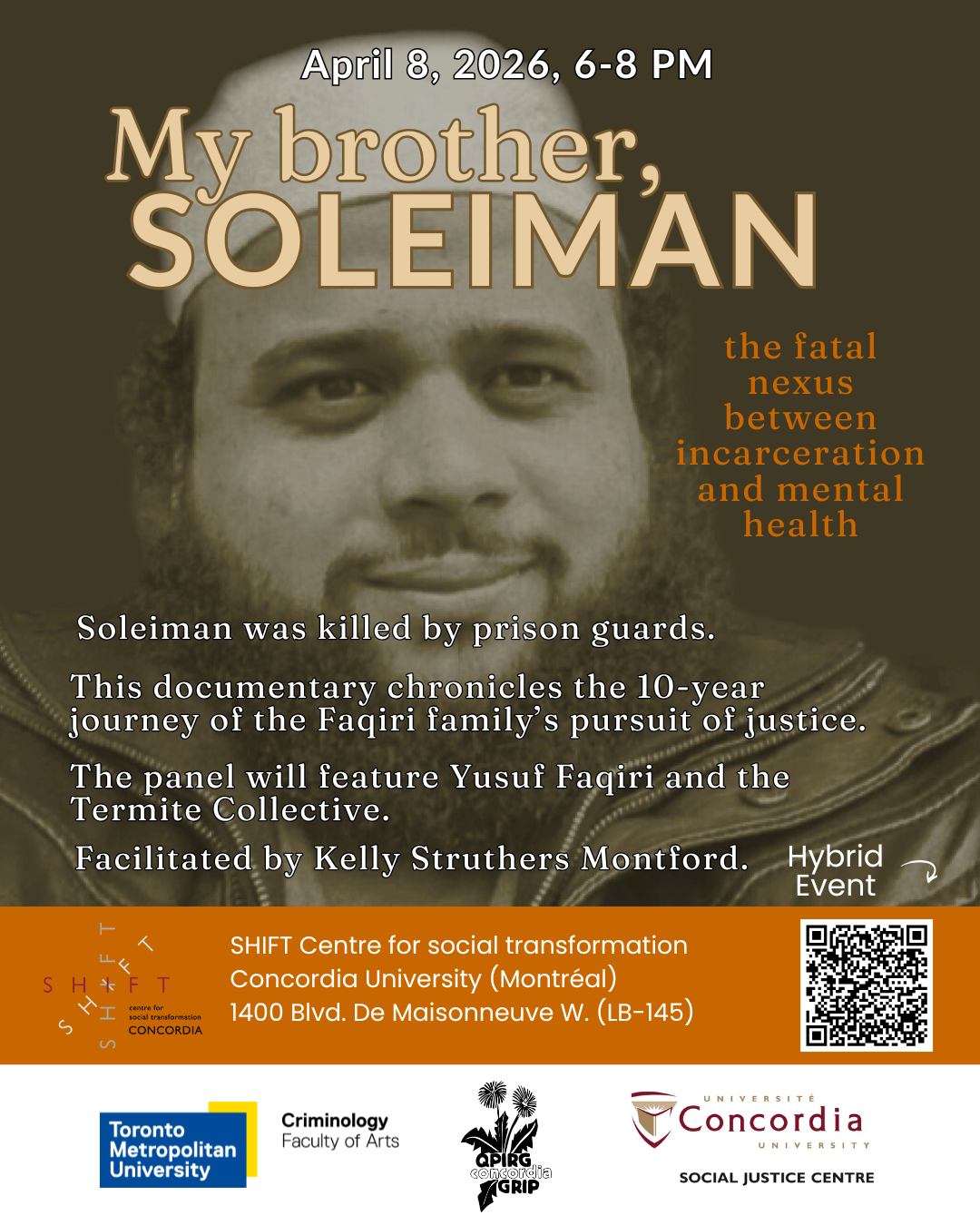 The panel discussion and Q&A will feature Soleiman's brother and founder of #JusticeforSoli, Yusuf Faqiri, as well as two community members of the Termite Collective.