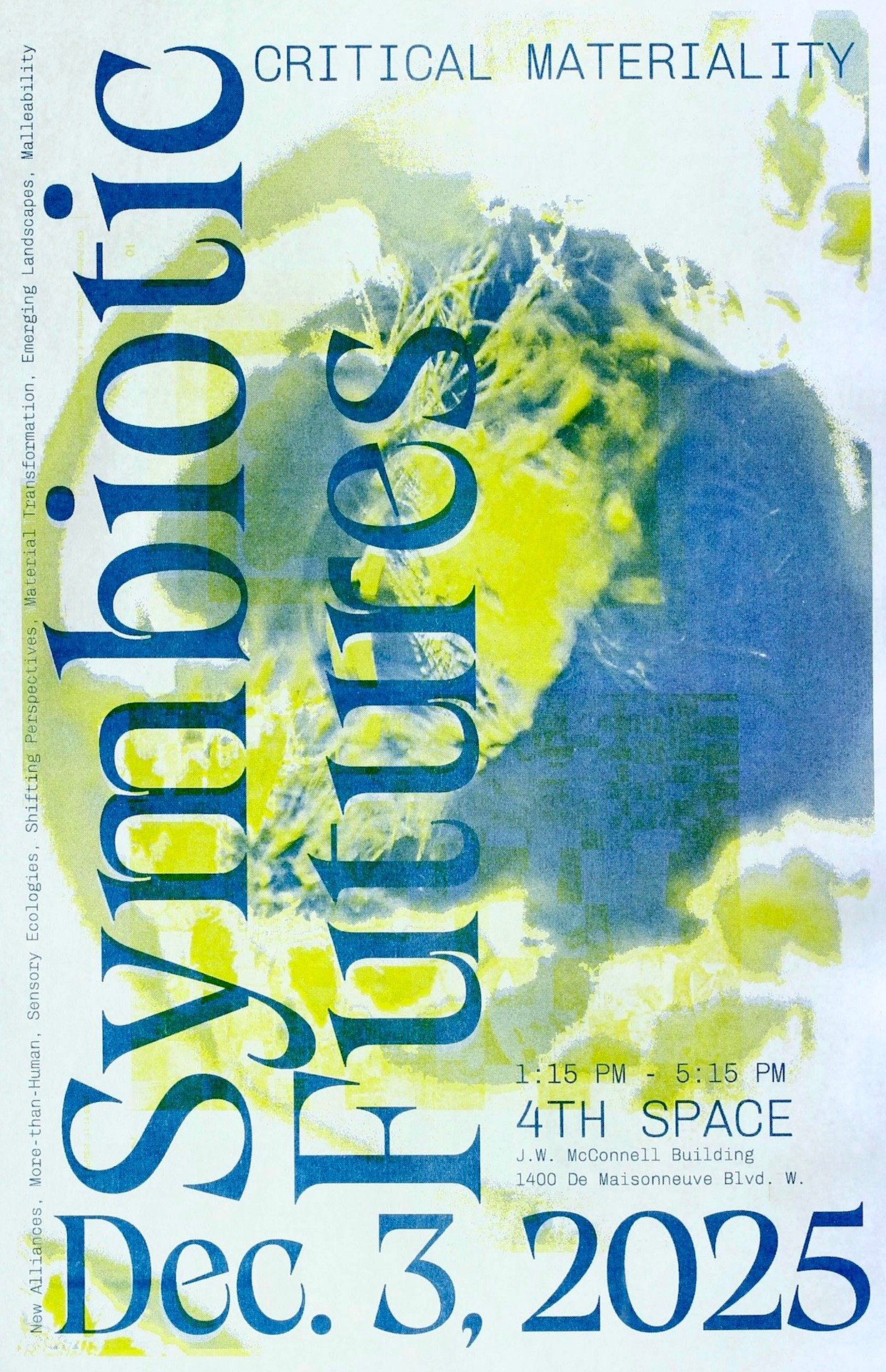Symbiotic Futures involves the research of artists and designers examining the materials that shape our environments. This pop-up exhibition questions how to shift perceptions around what materials have or hold value in order to create new imaginaries of care and sustainability that subvert and critique consumerism and capitalist agendas. Paying close attention to our natural environment, these investigations incorporate natural materials, including soil, wood, plants, water, light, wind, and sound, and reimagine these elements as materials for art and design.