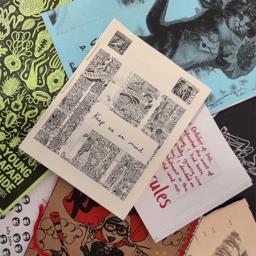 Zines are an accessible, easy to assemble publishing format with a rich history of activism, counterculture, and creativity. They can contain writing, artwork, and collage on any subject and have been embraced by communities as wide ranging as science fiction fans, comic book artists and feminist punk movements.
