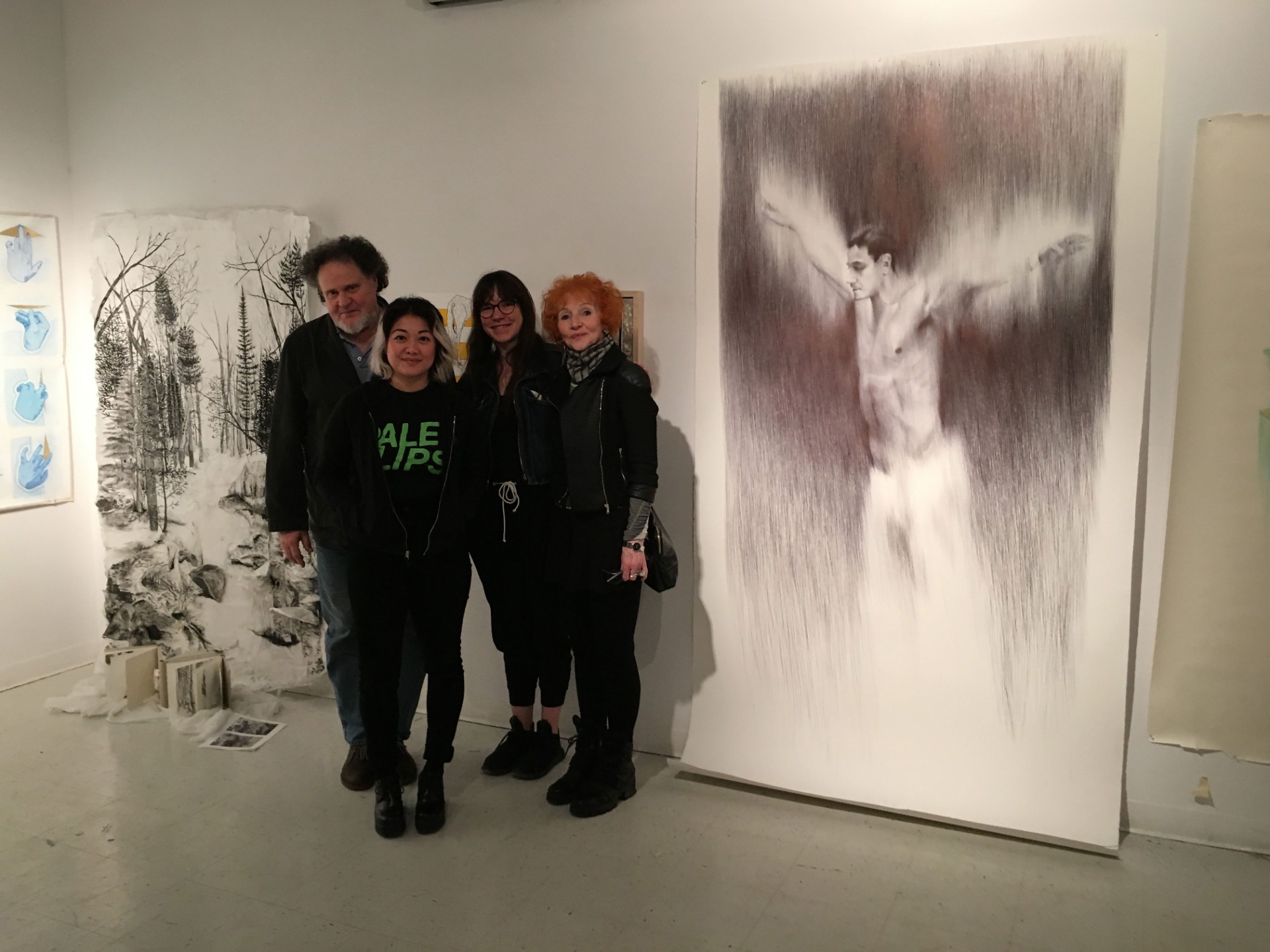 The 2016 Drawing Committee (from left): Lee Plotek, Marigold Santos and Michelle Furlong, along with Lise-Hélène Larin (donor). Photo by Patrick Traer.