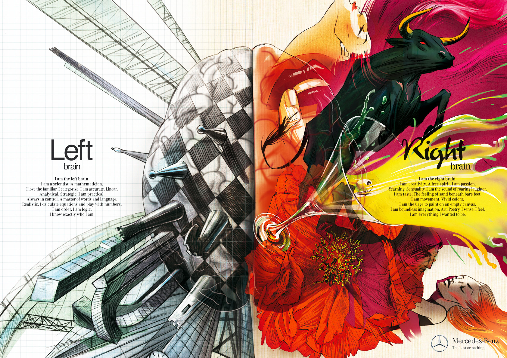 As the theory’s originator Roger W. Sperry said when he accepted his Nobel Prize in 1981, "The great pleasure and feeling in my right brain is more than my left brain can find the words to tell you."