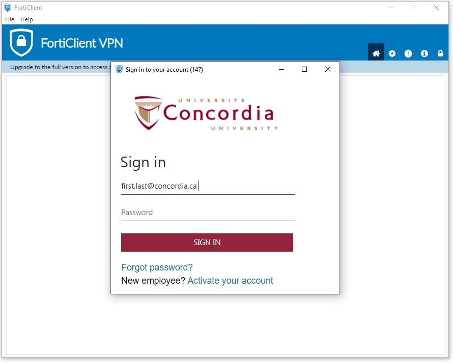 For all faculty and staff, please use first.last@concordia.ca when signing into the VPN.