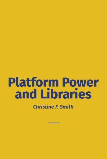 -Editor and chapter author of the refereed monograph Platform Power and Libraries