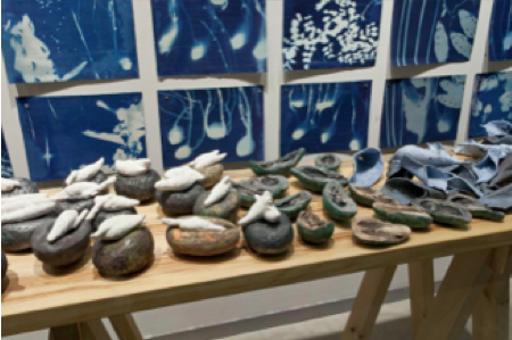 Francine works mostly in ceramics, printmaking and with a photographic printing process called cyanotype. Over the last thirty years, her work has taken on an interdisciplinary aspect, culminating into installations of botanical images which aim at reviving reverence and enchantment towards indigenous native plant life. It is an invitation to contemplation, rootedness and a way of reinventing images of the anima mundi.