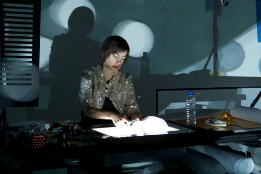 Manon De Pauw in performance (L'atelier ouvert) at Galerie de l'UQAM, 2009
