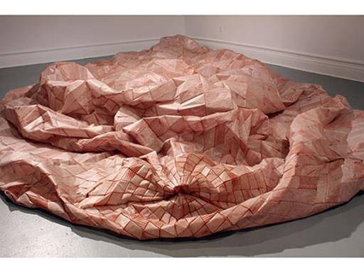 "Distance Arc" Quilted Newsprint, Silkscreen, Rust, Inflation System, 2013