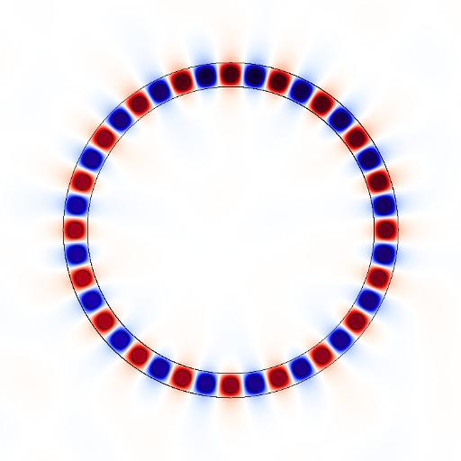 Simulated magnetic field profile of a resonant mode in a photonic crystal ring resonator