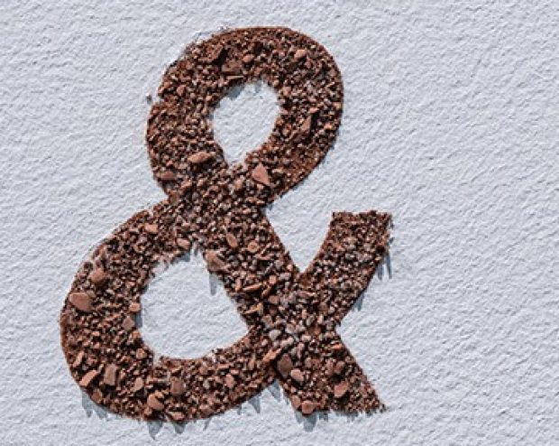 Exhibition signage using paper stencil and crushed rocks glued with rice paste for Jess Slipp's with & of (Becoming Rock)