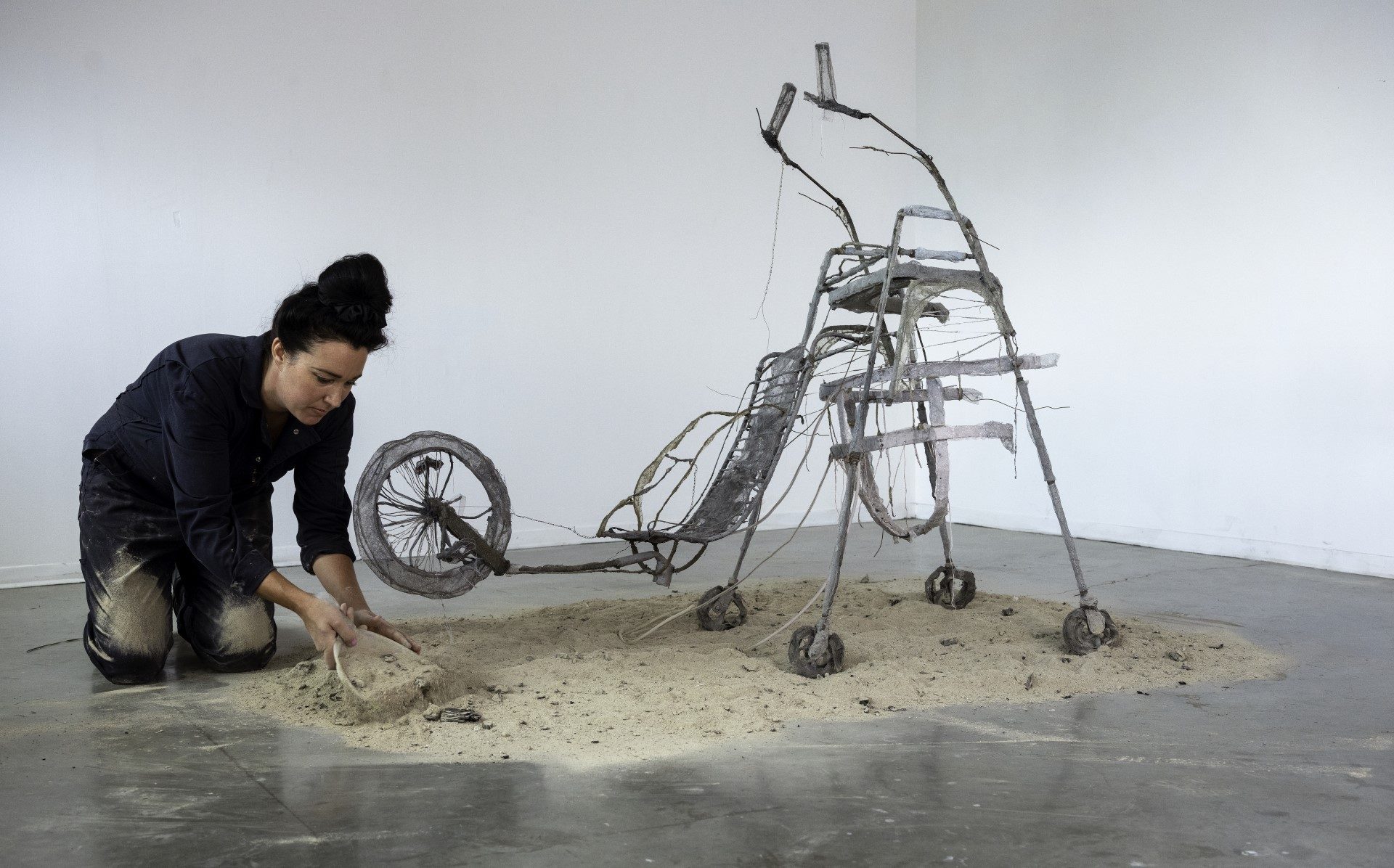 Les sculptures de Jannick Deslauriers se présentent comme des versions généralisées d'objets du quotidien, inspirées par des dizaines d'images glanées sur le web. Une fois transformés en un ectoplasme éthéré et fictif, un bâtiment, un fauteuil roulant ou encore un char d'assaut semblent avoir été abandonnés à leur dernière tâche et se transforment lentement en une forme de réminiscence. Dans ses recherches récentes, inspirées par la notion d'hétérotopie de Foucault, Deslauriers s'intéresse aux équipements et aux objets qui sont associés à des espaces tels que les parcs d'attractions, les maisons de retraite, les hôpitaux, les prisons ou encore les cimetières. À partir d'un lexique d'images en constante expansion, qui comprend tout, allant des vieilles machines volantes au matériel médical en passant par un tricycle d'enfant ou même de la lingerie, elle construit d'étranges prothèses hybrides. Dans ses dernières œuvres, les matériaux qu'elle utilise - acier, cire, tissu, cendres - et les actions qu'ils induisent - souder, recouvrir, coudre, disperser - invitent à penser la combustion, la fracture, l'enveloppe, la suture, la crémation et la régénération, pour finalement donner naissance à des objets-prothèses qui dévoilent une inquiétante étrangeté.