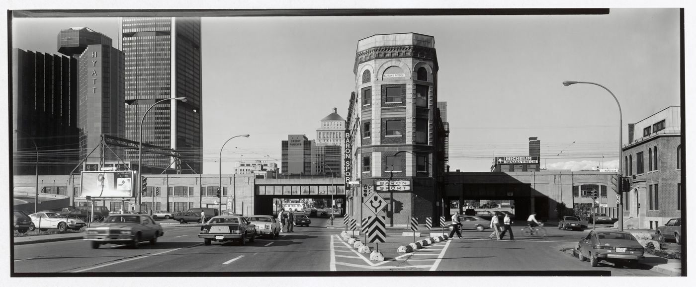 Gabor Szilasi, “Angle Notre-Dame - St.-Maurice, Montréal,” 1980. Gelatin silver print, 18,9 x 49,9 cm. Collection Centre Canadien d'Architecture/Canadian Centre for Architecture, Montréal. © Gabor Szilasi.