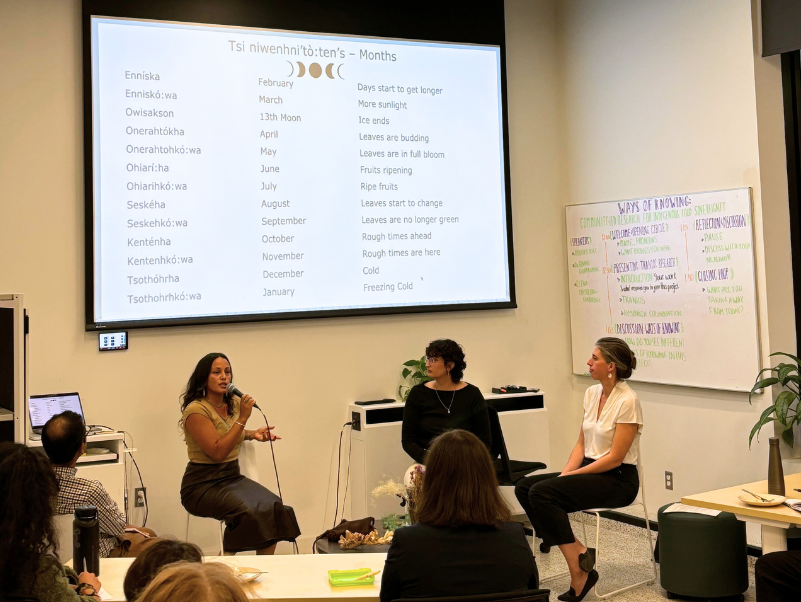 Photo: three panelists and SHIFT staff person at the event (from left to right, Govind Gopakumar, Brooke Rice, Elena Tresierra-Farbridge, Elisabeth Cramer).