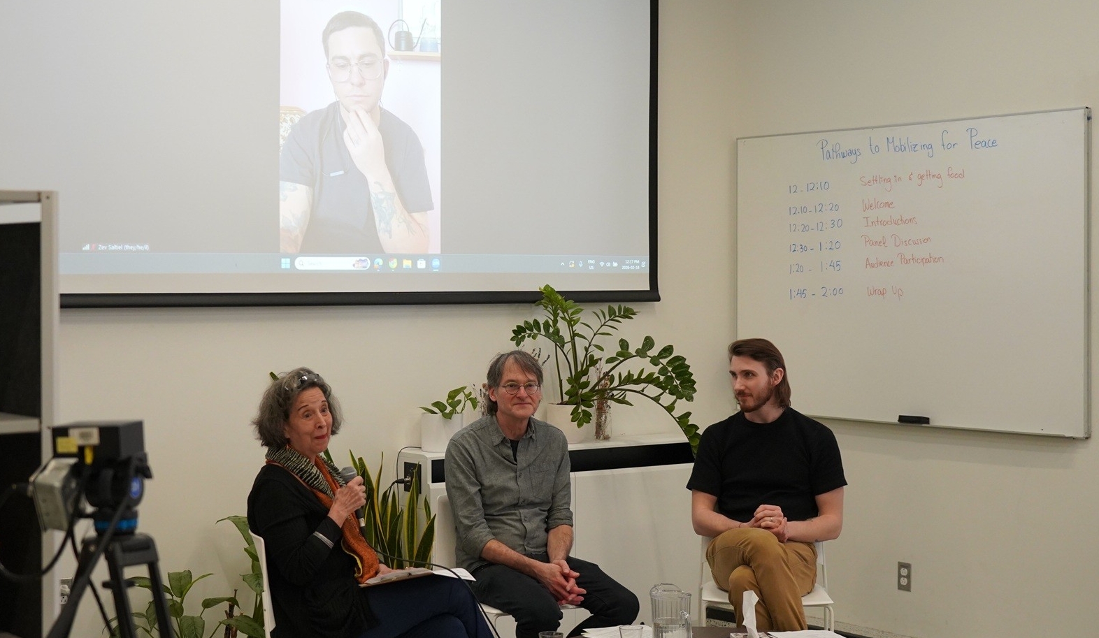 Le 18 février 2026, les membres de la communauté se sont réunis au SHIFT Centre pour discuter et explorer les efforts anti-guerre à Montréal et dans ses environs. Sharon Gubbay Helfer, Zev Saltiel et Glenn Rubenstein ont animé le panel de discussion. Les trois panélistes ont abordé le sujet avec diligence et ont proposé des solutions issues de leurs expériences respectives en matière de mobilisation pour la paix dans un monde en proie à la division.