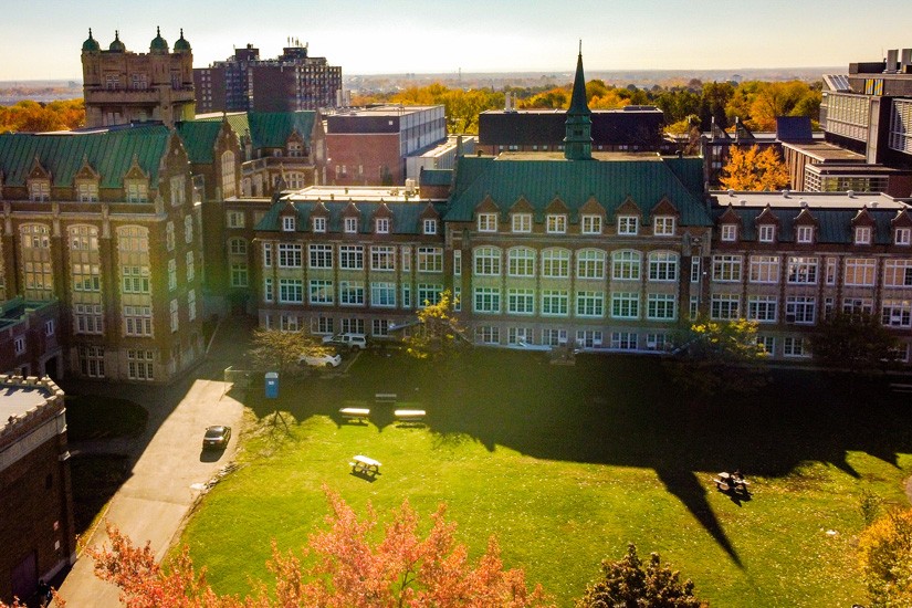 La Cour est l’espace vert central du campus Loyola — une cour extérieure accueillante entourée du Pavillon de psychologie (PY), du Pavillon F.-C.-Smith (FC) et du Pavillon Central (CC).