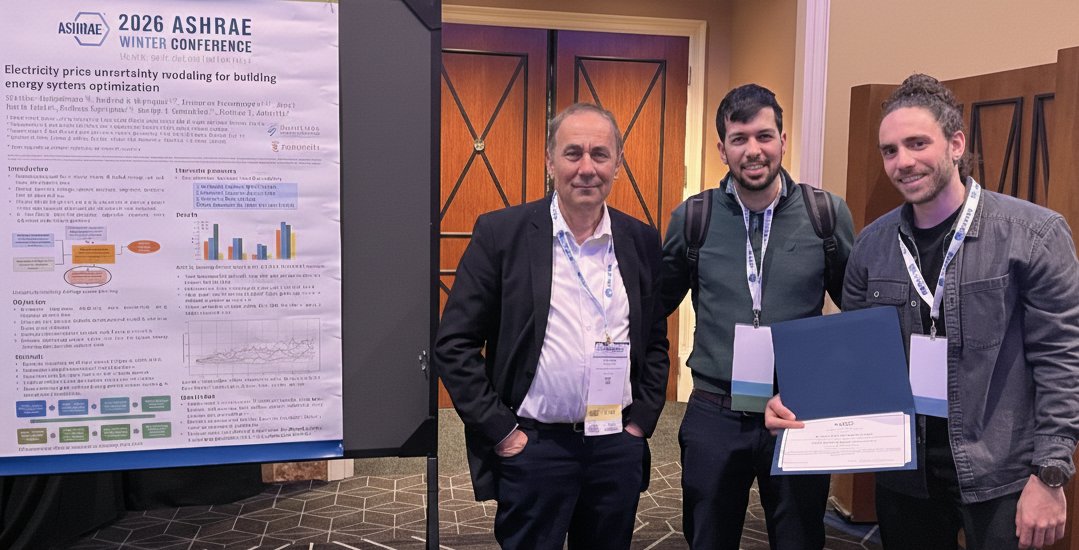 Andrea Petrucci received the Best Student Paper Award for his co-authored publication: Petrucci A., Vallianos C., Candanedo J., Delcroix B., Buonomano A., Athienitis A. (2024). "Towards dynamic pricing algorithm for residential buildings: A Model Predictive Control framework for load aggregation", the 3rd International Conference on Energy Transition in the Mediterranean Area SyNERGY MED 2024, October 21-23, Limassol, Cyprus.