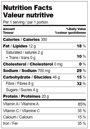 | Carottes râpées / Shredded carrot | 2/3 tasse / cup (150 ml) | |