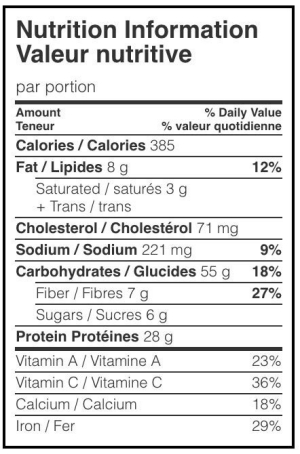 | Persil, frais, haché/ Parsley, fresh, chopped | 1 c. à table / Tbsp (15 mL) | |