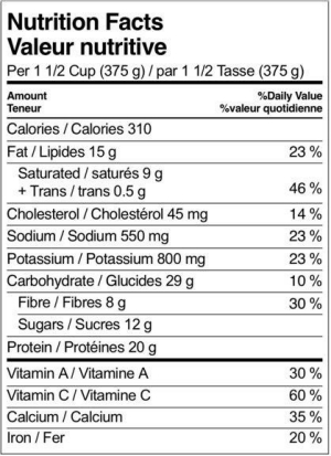 | Sel / Salt | 1c. à thé / 1 Tsp (5 ml) | |