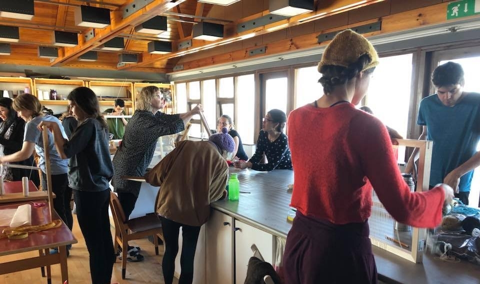 Students will have accommodation and studio facilities at the Textile Center. Accommodations are shared 2-person rooms in the refurbished Women’s School (Kvennaskóllin), with shared kitchen and bathroom facilities. Students will share a large studio with a view over the Húna Bay, suitable for table-based work. A weaving loft has looms for experienced weavers and a dye-shed provides facilities for natural dyeing.