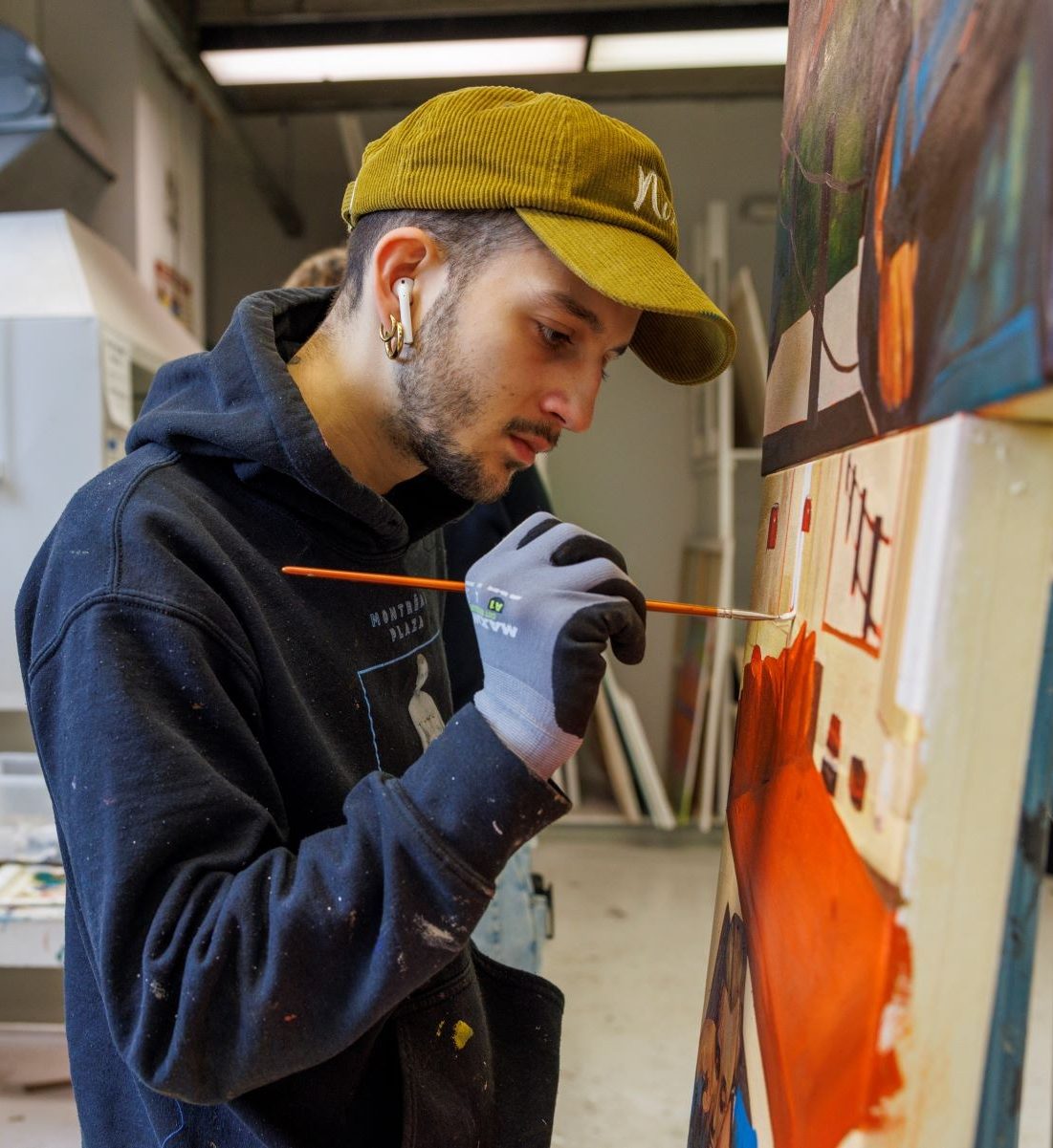 Studying Studio Art means exploring the ideas, materials and methods that shape contemporary visual culture. You’ll experiment across seven disciplines – from ceramics, fibres and material practices, to intermedia, painting and drawing, photography, print media, sculpture and installation – developing both your technical skill and personal artistic voice.