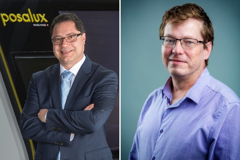 Marco Nadalin, responsable du développement des affaires à Posalux, et Rolf Wuthrich, professeur agrégé à l’École de génie et d’informatique Gina-Cody | Photo par Posalux SA